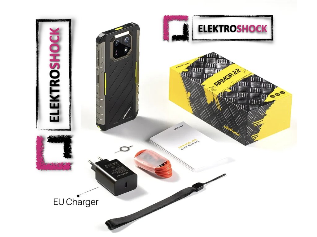 1 x Ulefone Armor 22 Smartphone 1 x cablu de date (100 cm) 1 x folie de protecție (preinstalată) 1 x ecran de sticlă temperată protejată 1 x încărcător UE (priză 100 ~ 240V / UE) 1 x ac SIM 1 x șnur |